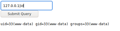 Entramos a la página superadmin.php, y vemos que es otro texto box query, metemos una ip local y nos arroja datos correctos, metemos el signo "|", con un id, y nos muestra lo siguiente.