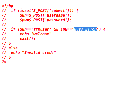 Encontramos otra página interesante, un XSS no funciona, una inyección de sql tampoco, pero podemos oprimir submit y observar el código para ver a donde lleva, y se puede encontrar esto al revisar el código fuente.