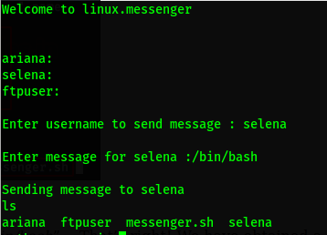 Al ejecutarlo, nos muestra que puedes mandarle mensajes a los demas usuarios, al revisar el código podemos ver como hay una vulnerabilidad en $msg, se puede ejecutar un comando.