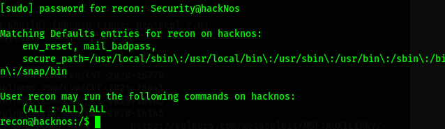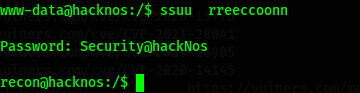 Logramos entrar en el servidor, ahora hagamos un spawn y en una busqueda de aplicaciones con accesos root, solo encontramos uno interesante pkexec, pero primero hagamos algo básico, entrar al usuario recon con la misma contraseña, ya que no hay nada en passwd y no hay acceso a shadow