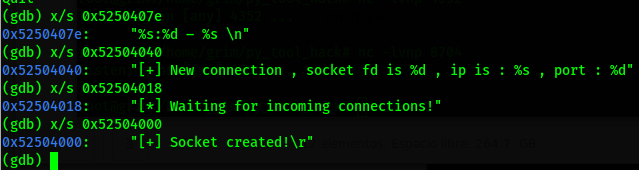 Vamos revisando con gdb las entradas a printf y obtenemos lo siguiente.