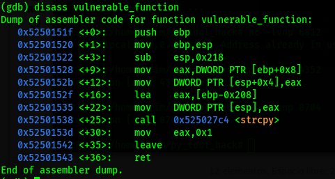 Al parecer encontramos un strcpy sin protección, lo que quiere decir que una shell puede ser ejecutada, e incluso arriba hay un buffer de cerca de 520 bytes.