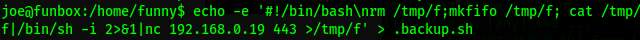 Encontramos correos donde mencionan un bash oculto, y al encontrarlo en el directorio de funny, podemos ver que tiene permisos de escritura, así que hagamos una shell que pueda conectarnos.