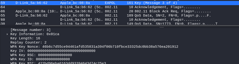 Revisamos con wireshark,y parece ser un archivo con autenticación hacía un rooter con encriptación WPA, así que solo es encontrar la contraseña.