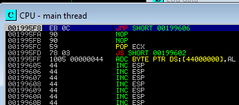 Podemos ver que avanza pero hay un problema, esta mal establecido, faltan algunos bytes y habrá que alinearlo, asi qué agregaremos algunos NOP's.