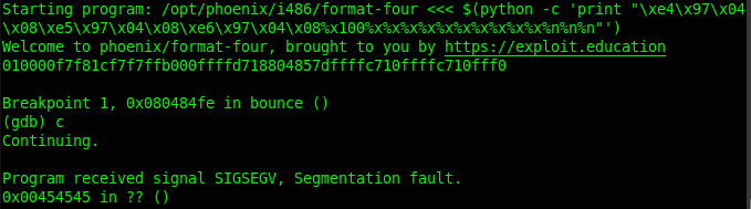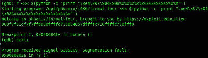 Perfecto, vamos a llenar el buffer para encontrar la vulnerabilidad del printf de bounce.