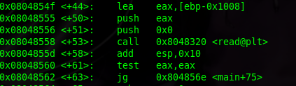 Ok, pero... ¿cómo sería en el debugger?, hay que ver primer de cuanto es el buffer que dice ebp-0x1008, que sería 4100 - ebp - ret = 4096, es argc y la instrucción es que si es más grande que 16, entonces se saldrá.