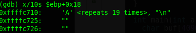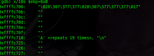 Nota importante: Cada vez que hago esto, coloco intrucciones a gdb que creo son muy necesarios, ya que cada que el debugger abre una aplicación, lo hace en un espacio de memoria relativa y al colocarle, unset env LINES y unset env COLUMNS, GDB muestra el uso de memoria real o muy cercano al que usa realmente la aplicación, facilitando la explotación de la vulnerabilidad.