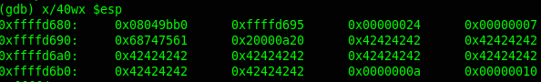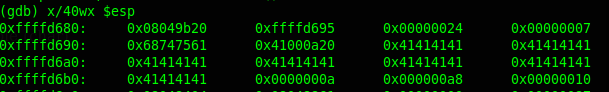Nota importante: Cada vez que hago esto, coloco intrucciones a gdb que creo son muy necesarios, ya que cada que el debugger abre una aplicación, lo hace en un espacio de memoria relativa y al colocarle, unset env LINES y unset env COLUMNS, GDB muestra el uso de memoria real o muy cercano al que usa realmente la aplicación, facilitando la explotación de la vulnerabilidad.