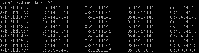 Podemos ver donde inicia el overflow, el proceso es el mismo, encontrar el inicio del desbordamiento, verificar si sobreescribe esp y encontrar donde pondremos una futura shell.
