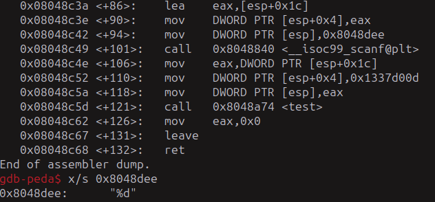 Ahora encontramos un scanf que coloca un espacio de 4 bytes y debe ser en formato integer..