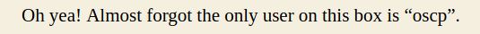 Ahora tenemos un usuario y una contraseña, habrá que intentar entrar ssh -i id_rsa oscp@address.