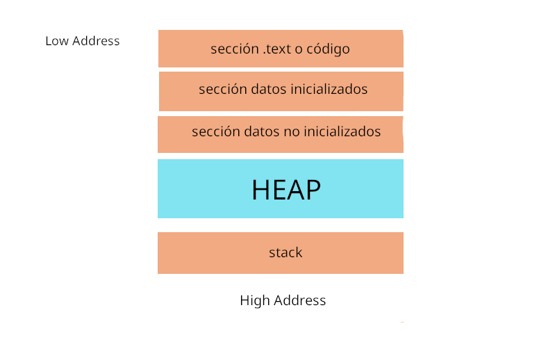 Aquí es donde se hacen las reservas de memoria, puede ser que se reserve memoria directamente si es poca lo que se necesita, o puede ser que se coloquen varios segmentos de memoria si se necesitan más o los famosos segmentos "arena" cuando se necesita bastante más memoria, por ejemplo, malloc, calloc, vamos a explicarlos.