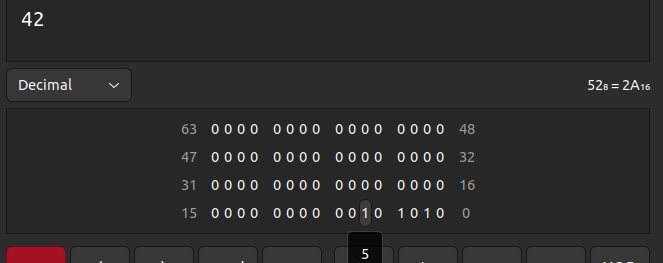 Solo hay que convertir el numero 42 a base2.
