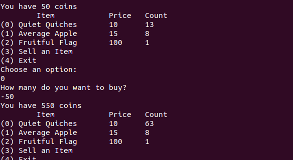 Para esta prueba, nos muestra un carrito de compras, se puede hacer pruebas intentando con format-string, intento de overflow, pero nada, hasta que colocamos un numero negativo y funcionó.