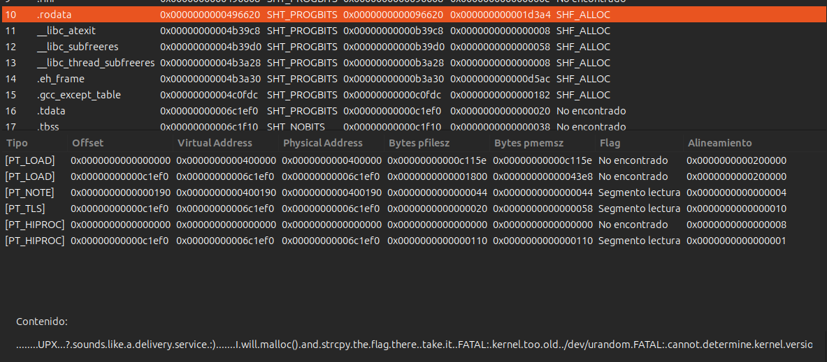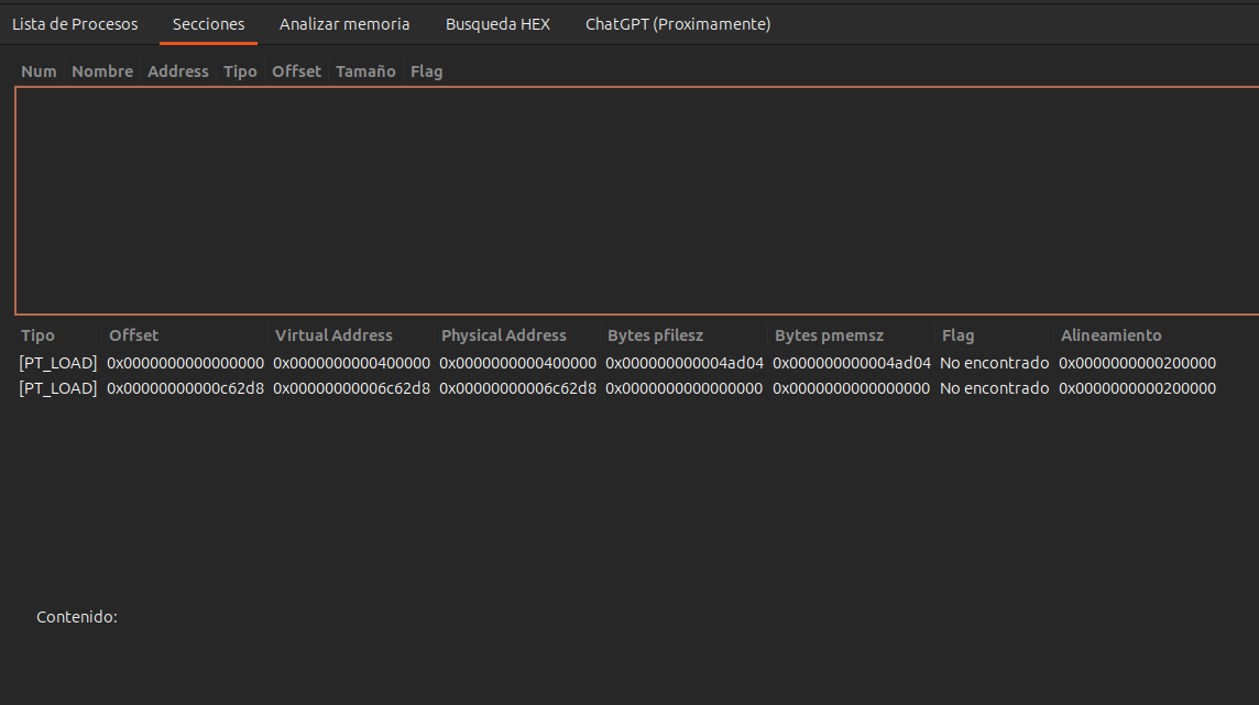 Pareciera que todo bien, sin embargo... no muestra nada en las secciones, vamos a revisarlo mediante hexadecimales.