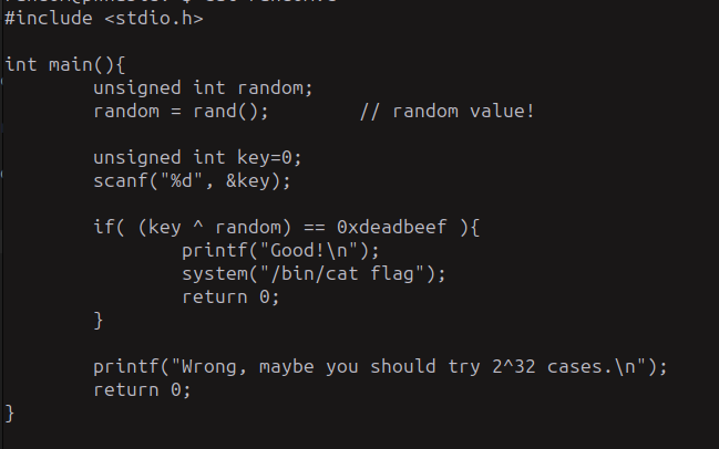 Como se puede observar, hay una comparativa, entre un numero random y la clave con deadbeef.