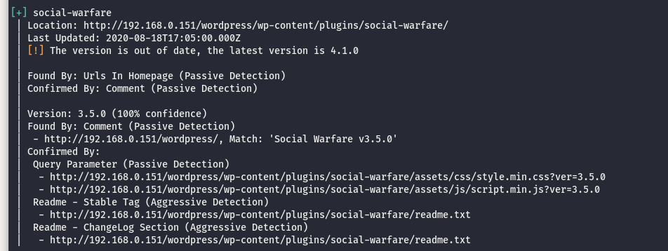 Desafortunadamente no encontramos una contraseña, pero encontramos una vulnerabilidad en social-warfare donde alparecerse puede hacer un RFI (Remote File Inclusion), es parecida a LFI(Local File Inclusion).