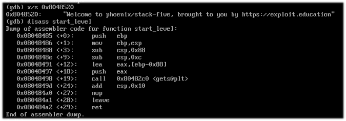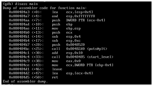 Volvemos a encontrar la funcion "start_level", pero no hay nada más. Eso significa que hagamos la prueba de hacer un buffer overflow.