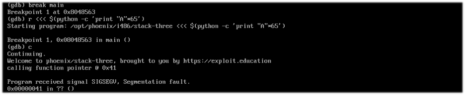 Como se puede observar, se ha hecho un overflow (0x00000041).