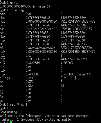 Se puede observar lo que sucede si le ponemos 1 a rax.