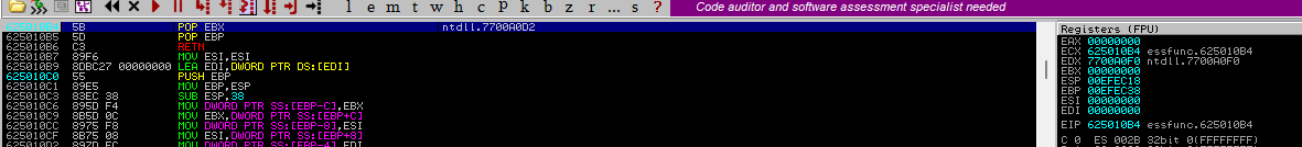 Utilicemos el primero, no tiene protección en ASLR, Rebase y SafeSEH