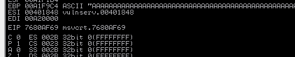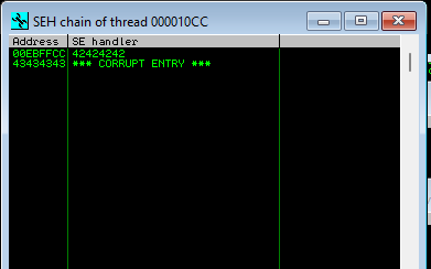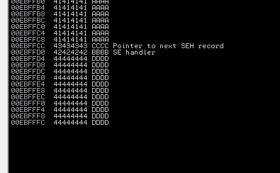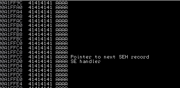 Pero aparece un detalle importante, no se sobreescribe EIP pero si logramos sobreescribir nSEH y SEH.